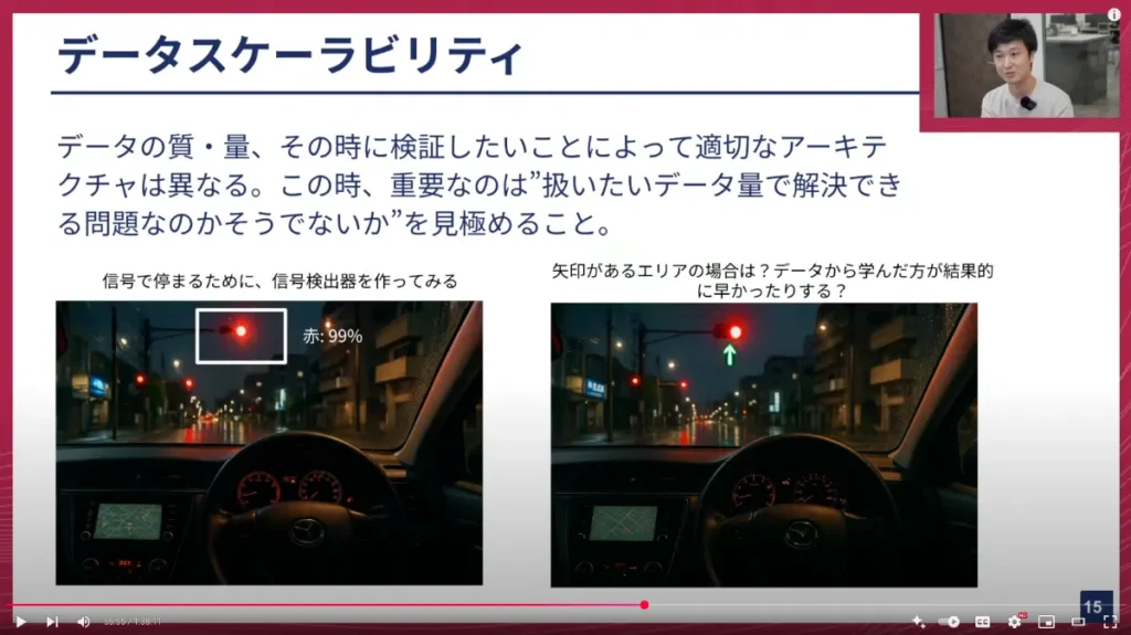 このように、モデル側のアーキテクチャをうまく変えることによって、良い運転を実現する一つの秘訣だと考えています。何がデータで解決できて、何がデータで解決できないのか、そしてデータで解決できない問題に対して、どのようなモデリング、つまりモデル設計をするべきかを見極めるのは、非常に難しいことですが、自動運転開発ならではの、非常にエキサイティングな仕事だと思っています。