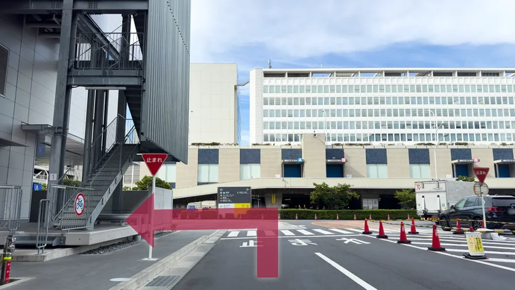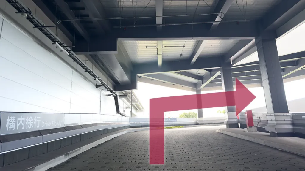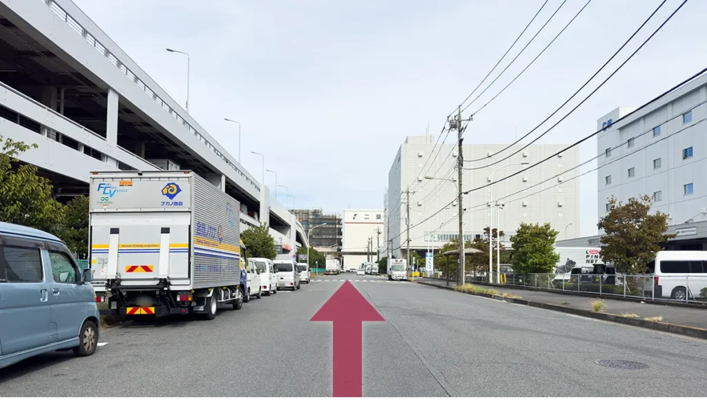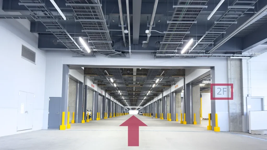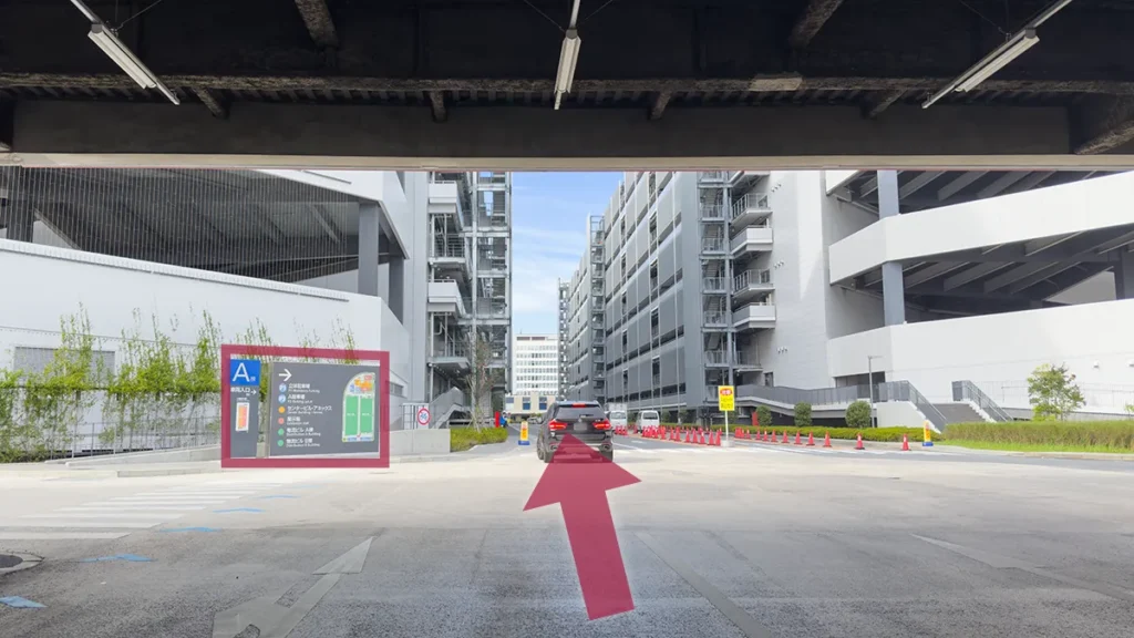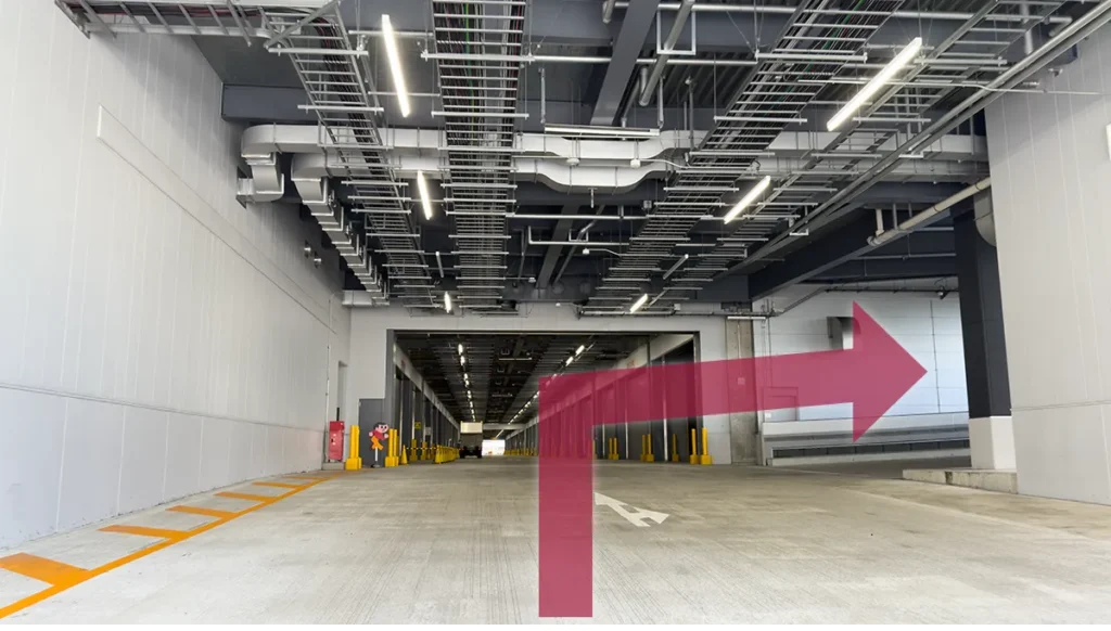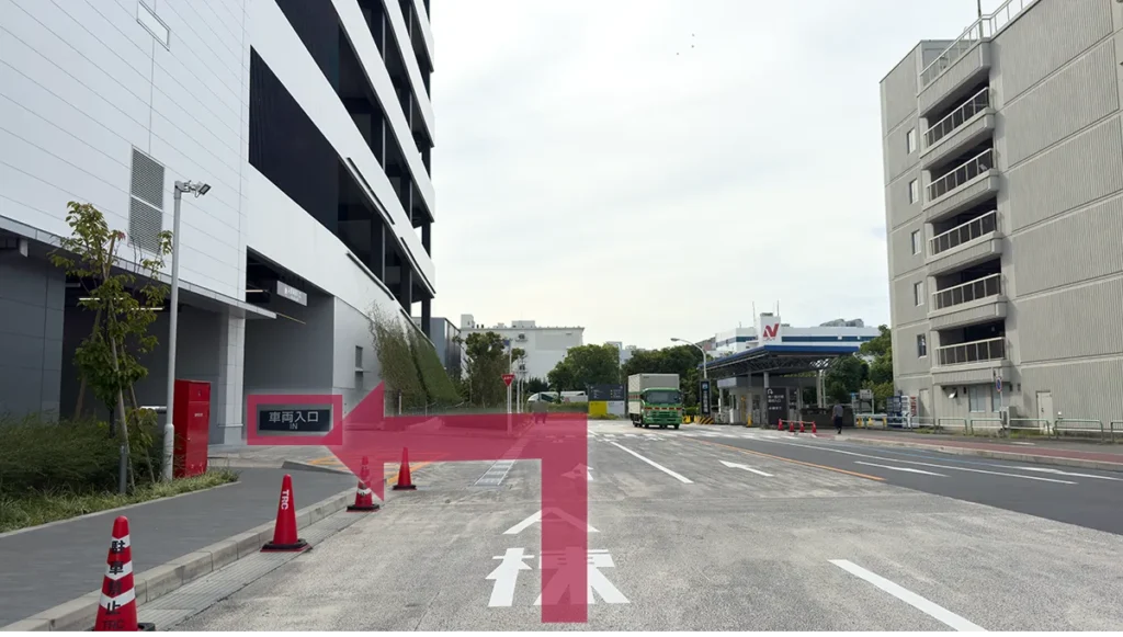 「車両入口」の案内が見えますので、左折して物流ビルA棟に入ります。