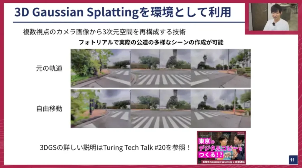 山口: チューリングはスタートアップとしては多くのGPUを保有していますが、それでも無限にあるわけではありません。軽量かつ高速に多くのシミュレーションを回せることは、強化学習において非常に重要なので、3DGSの選択は合理的だと言えます。