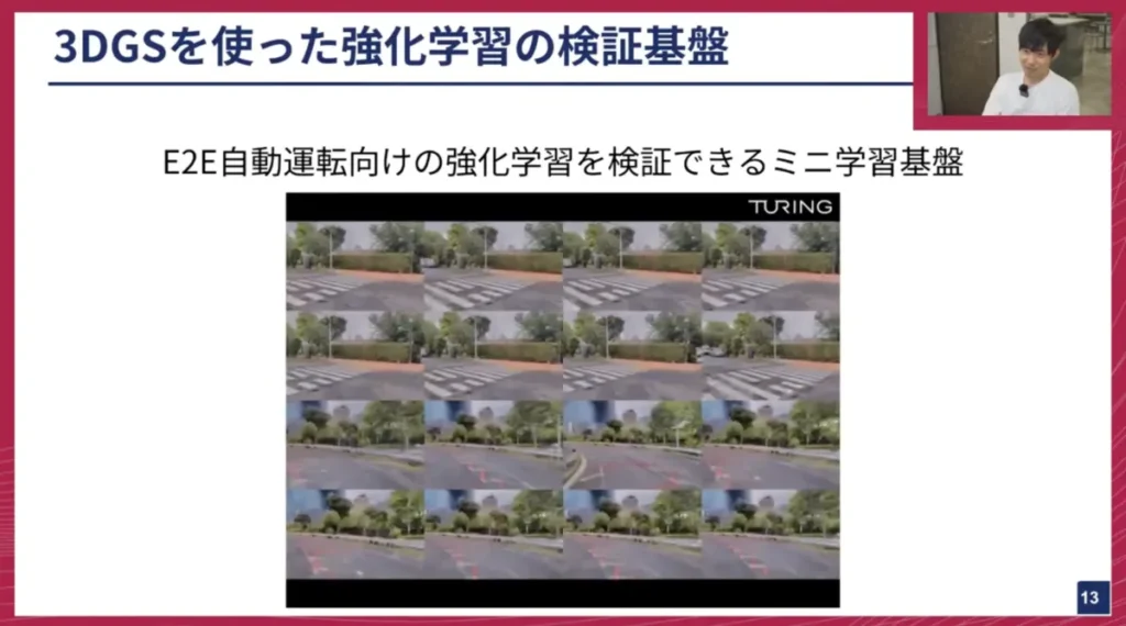 チューリングはすでに100万シーンを超える自動運転のデータセットを保有していますが、それら全てを3DGSで環境化できるはずですし、交通シーンを再現したり、さらに何倍、何十倍と拡張して強化学習の環境として活用することも可能ですよね。