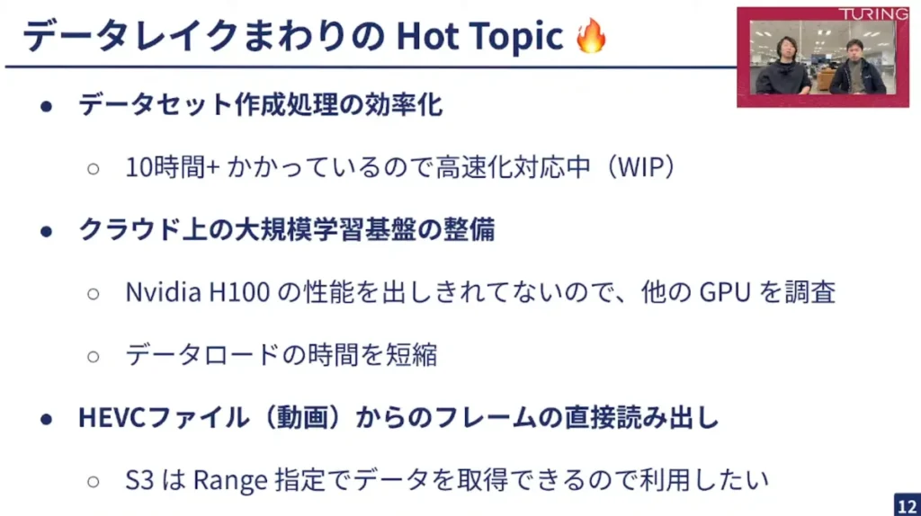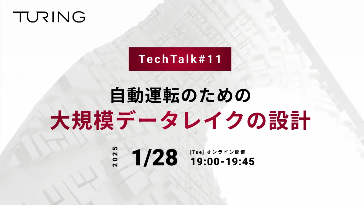 2025年1月28日、チューリングではTuring Tech Talk 第11回「自動運転のための大規模データレイクの設計」と題したオンラインイベントを開催しました。