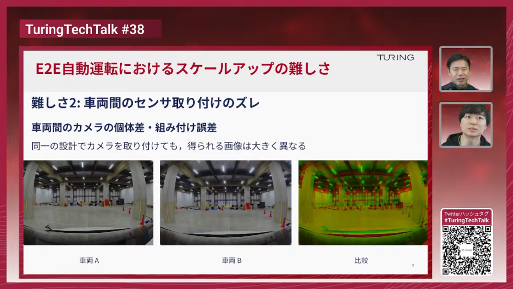 山口:今日の本題に入ります。「E2E自動運転モデル走行性能アップの取り組み」とありますけど、やっぱりE2E自動運転モデルって走行性能に差があったりするんですか?